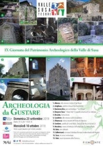 “Valle di Susa. Tesori di Arte e Cultura Alpina”, in collaborazione con la Soprintendenza archeologia, belle arti e paesaggio per la Città metropolitana di Torino organizza per domenica 23 settembre 2018 la nona Giornata del patrimonio archeologico della Valle di Susa, durante la quale i principali siti archeologici della Valle saranno aperti e accessibili per tutta la giornata, con la possibilità di accompagnamenti guidati gratuiti. Nell’ambito della IX Giornata del Patrimonio archeologico della Valle di Susa, le associazioni di Avigliana che si occupano di archeologia hanno ideato iniziative, visite e mostre per far conoscere il patrimonio storico-culturale della città.