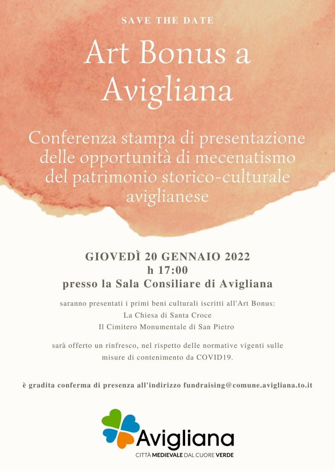 Giovedì 20 gennaio, alle 17 in sala consiliare, sarà presentato il programma Art Bonus ad Avigliana, e le modalità di accesso e beneficio del credito d’imposta a cui danno diritto le erogazioni liberali a favore dei beni iscritti.