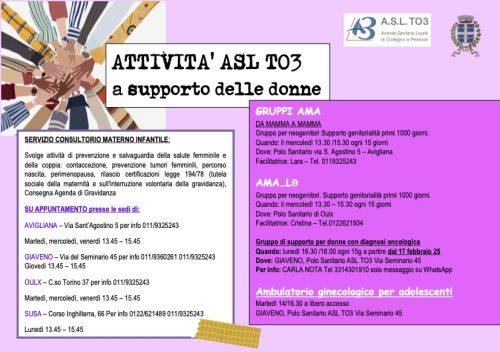Avigliana, 4 aprile 2025 – I servizi a supporto delle donne dell’Asl To 3 sono distribuiti su tutto il territorio della Valle di Susa e prevedono un consultorio materno infantile, un centro antiviolenza metropolitano, un gruppo di supporto per donne con diagnosi oncologica, un ambulatorio ginecologico per adolescenti e un supporto psicologico per madri e figli adolescenti.