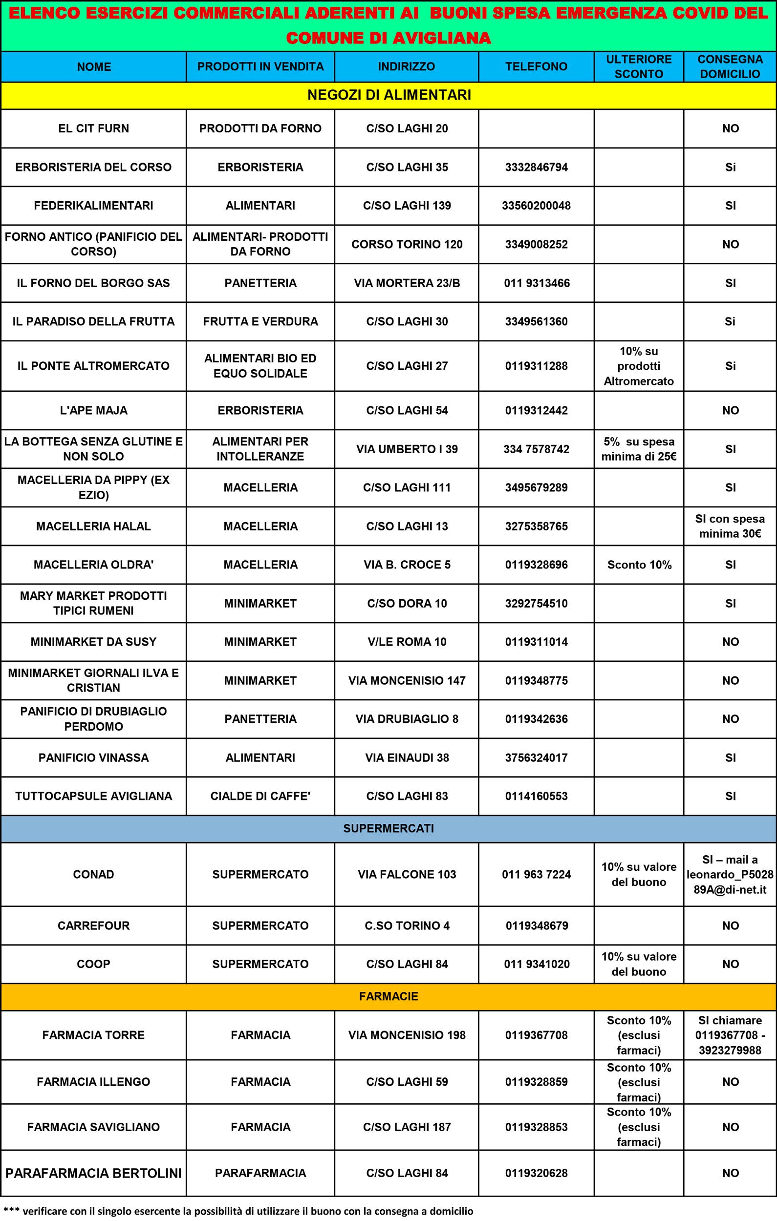 Al momento della consegna dei buoni ti verrà fornito l’elenco degli esercizi commerciali aderenti all’iniziativa comunale, disponibile anche sul sito del Comune di Avigliana.