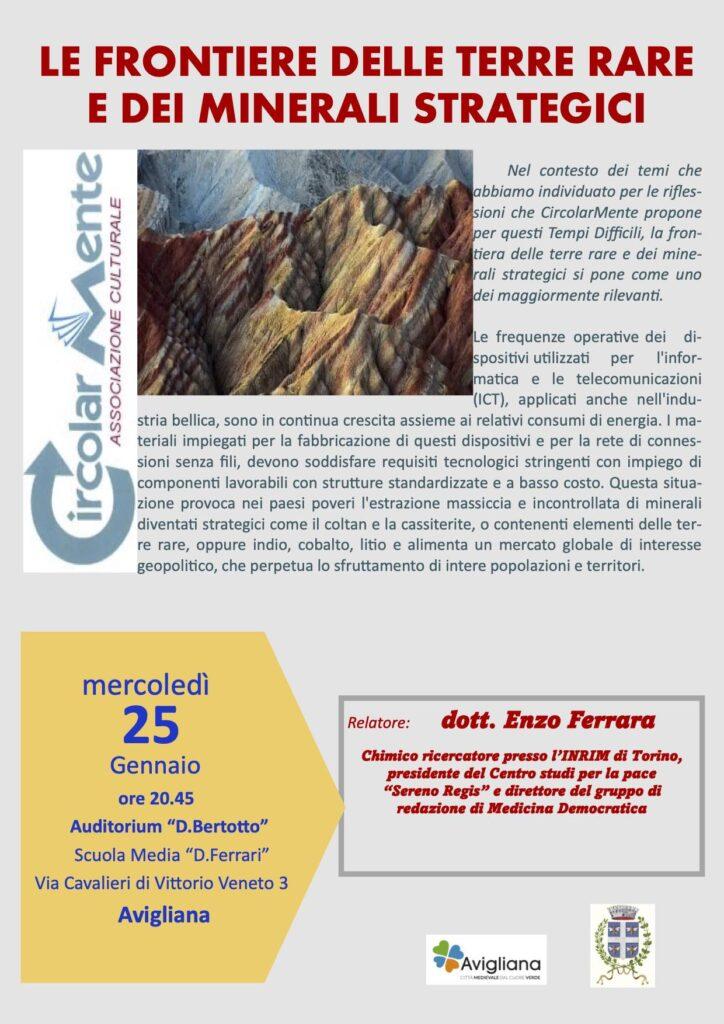 Il prossimo incontro di Circolarmente si tiene mercoledì 25 gennaio alle 20,45 all’auditorium Bertotto: relatore Enzo Ferrara, chimico ricercatore, presidente del Sereno Regis
