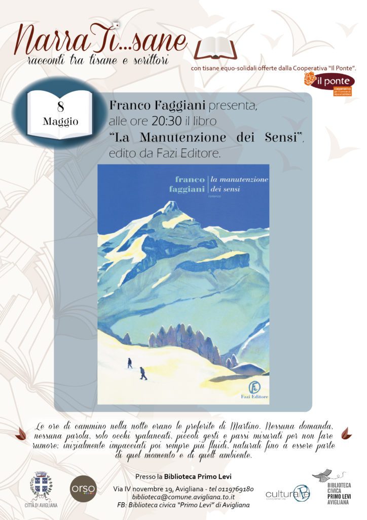 Mercoledì 8 maggio alla biblioteca Primo Levi di Avigliana si terrà un incontro con lo scrittore Franco Faggiani nell’ambito della rassegna Narra Ti…sane