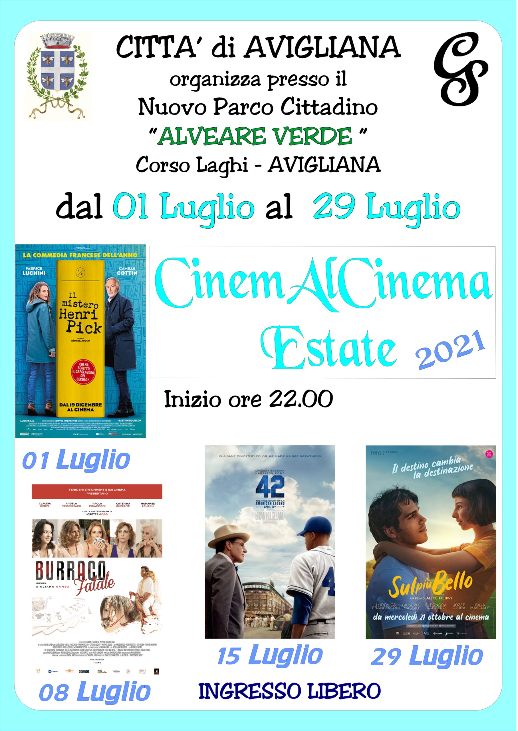 Ritorna l’appuntamento estivo con il cinema all’aperto il giovedì sera alle 22 al parco Alveare Verde. Sono previste quattro proiezioni: il 1 luglio “Il mistero di Henry Pick”, l’8 luglio “Burraco fatale”, il 15 luglio “42-La vera storia di una leggenda americana” e il 29 luglio “Sul più bello”.