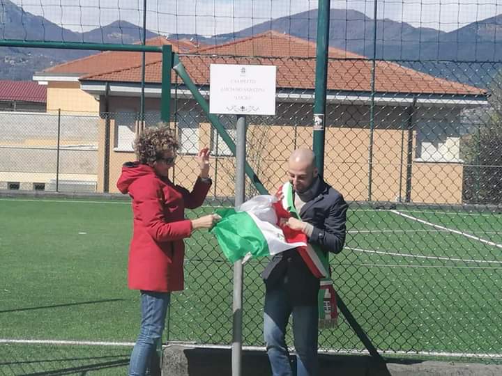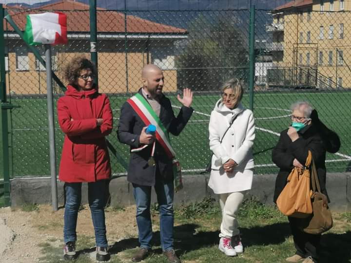 Si è svolta sabato 9 aprile nel primo pomeriggio la cerimonia di dedica a Luciano Sabatini del campetto di calcetto che si trova accanto al parco Alveare verde