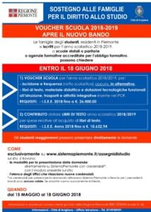 Dal 15 maggio 2018 e con scadenza al 18 giugno 2018 sarà aperto il bando della Regione Piemonte relativo al voucher per il diritto allo studio