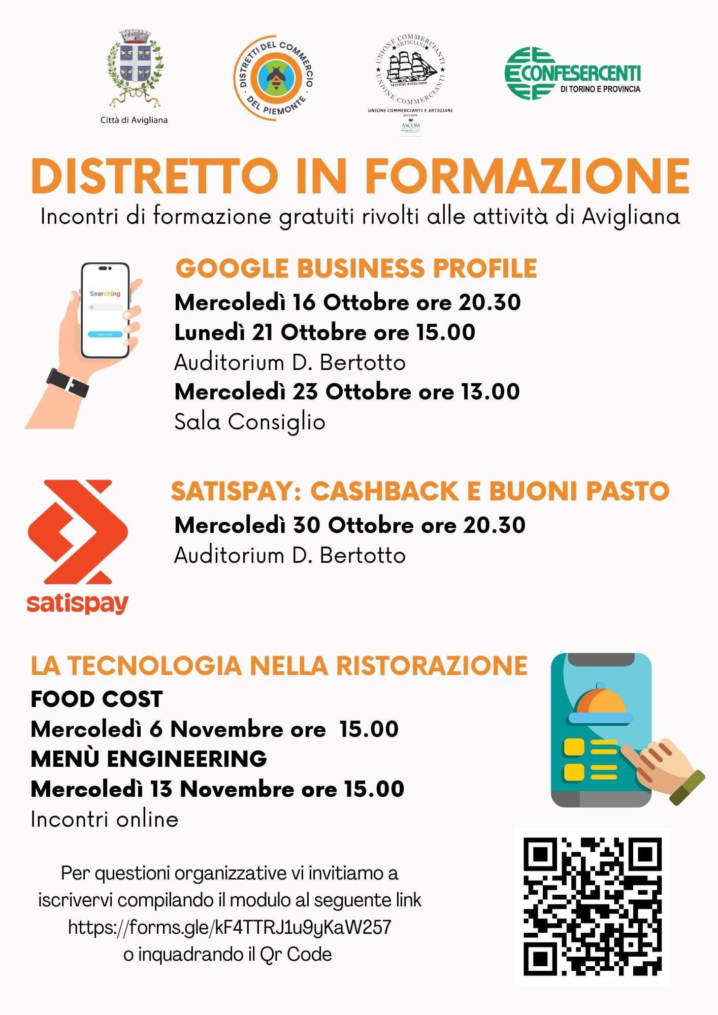 Avigliana, 15 ottobre 2024 – Nella serata del 3 ottobre scorso, il Distretto del Commercio di Avigliana ha aggiornato le attività commerciali rispetto agli interventi che si realizzeranno nei prossimi mesi. Tra le iniziative è stato presentato il ciclo di incontri gratuito “Distretto in formazione” in collaborazione con Confesercenti Torino e Provincia che prevede diversi appuntamenti su tematiche diverse. Il primo tema sarà una formazione su Google business profile dove saranno presentate le funzionalità e le potenzialità della scheda di Google che consente a tutte le attività commerciali di indicare i propri orari di apertura, i contatti anche dei canali social e di pubblicare aggiornamenti e prodotti. È una vetrina digitale ormai divenuta fondamentale per essere trovati online. La lezione su Google business profile sarà replicata in tre date e orari diversi per favorire la massima partecipazione: Mercoledì 16 ottobre alle 20,30 e lunedì 21 ottobre alle 15 in auditorium Daniele Bertotto e mercoledì 23 ottobre alle 13 in sala Consiglio. L’attività di formazione su Google è particolarmente importante, non solo per la visibilità e promozione della propria attività, ma anche perché sarà integrata nel sito del Distretto del Commercio in fase di realizzazione.
