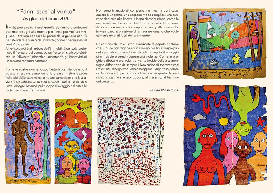 Due le proposte di Arte per voi con il patrocinio del Comune di Avigliana: riapre il programma espositivo di quest’anno prorogando la mostra “Panni stesi al vento” del pittore e musicista Enrico Massimino e si inaugura la mostra “Sessant’anni di pittura” di Alfredo Ciocca