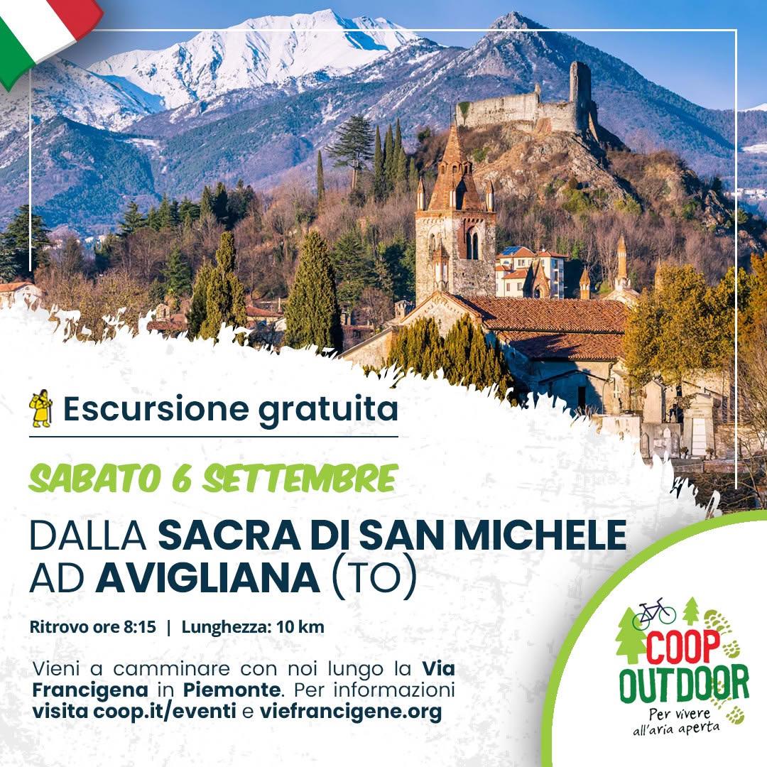 “Coop outdoor – I love Francigena” in Piemonte, escursione dalla Sacra di San Michele ad Avigliana sabato 6 settembre 2025 con ritrovo alle 8,15 alla Coop Le Torri