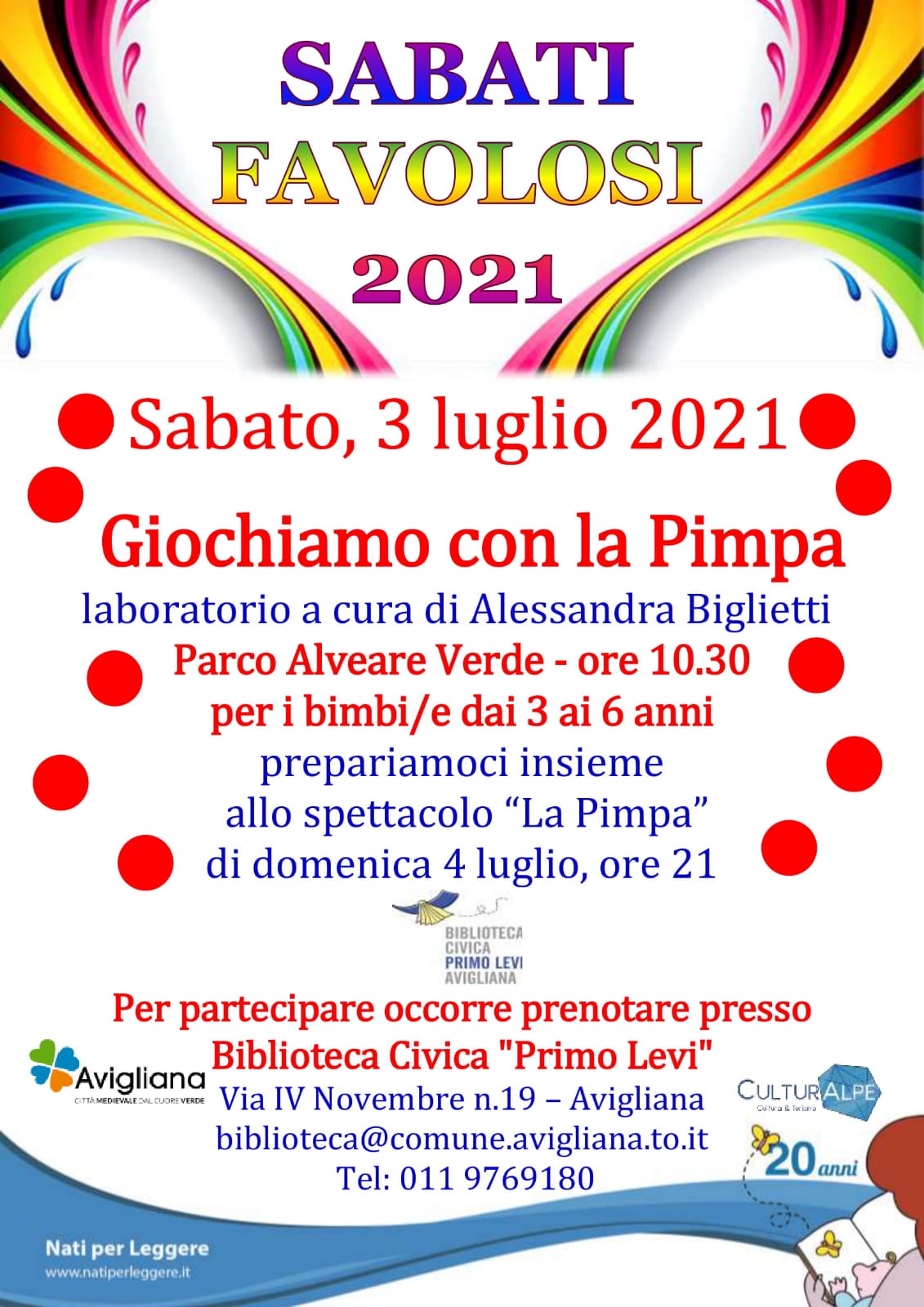 La biblioteca civica Primo Levi propone infine i laboratori dei “Sabati favolosi” per i più piccini all’Alveare verde nei giorni 19 giugno, 3 e 24 luglio.
