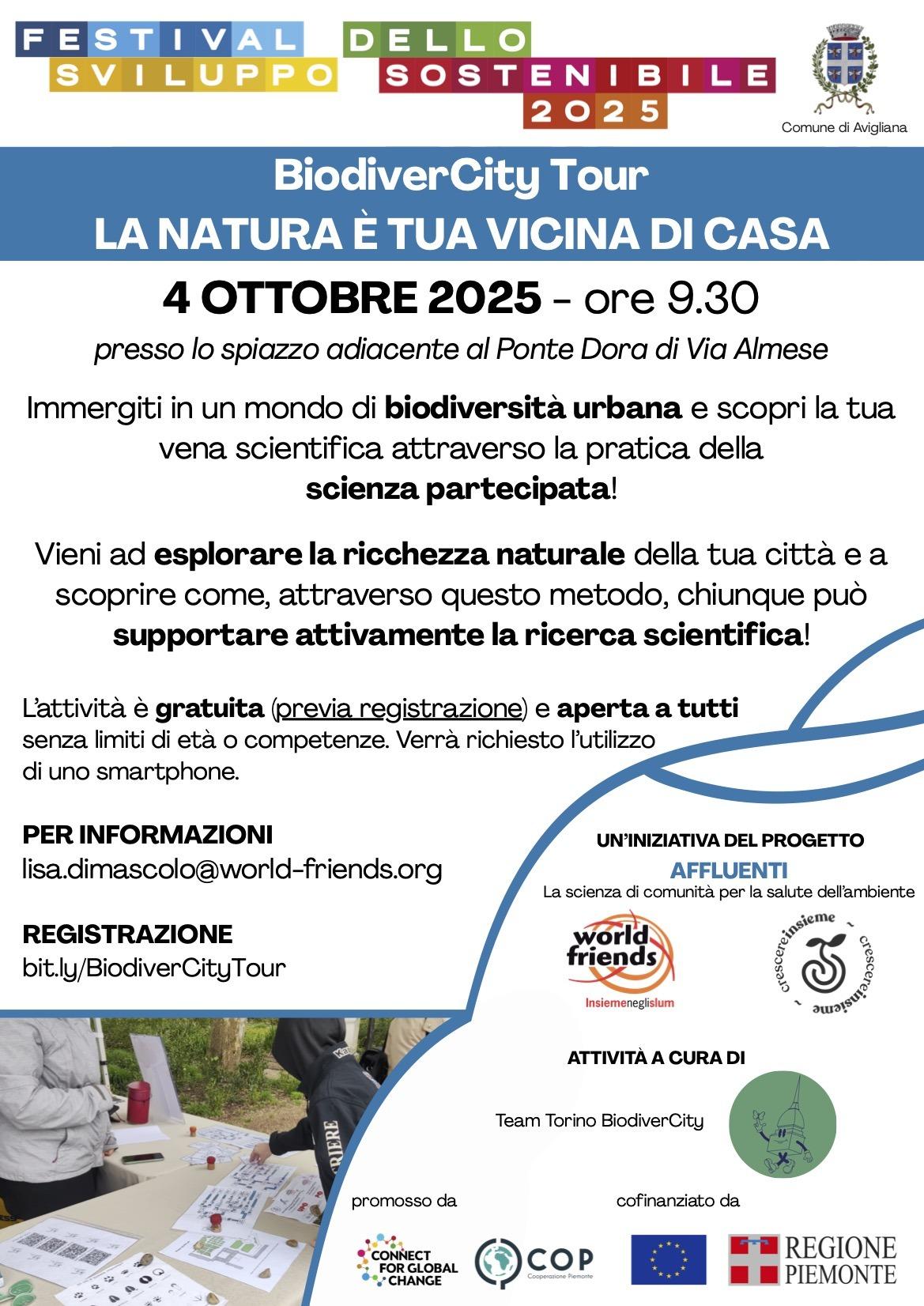 - Alle 9,30 BiodiverCity tour – “La natura è tua vicina di casa” (presso lo spazio adiacente al ponte Dora di via Almese). Registrazione: http://bit.ly/BiodiverCityTour