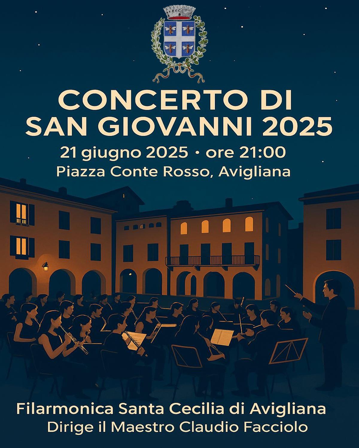 Avigliana, 20 giugno 2025 – La Filarmonica Santa Cecilia suonerà in occasione del concerto di San Giovanni sabato 21 giugno 2025 alle 21 al parco Alveare verde (anziché in piazza Conte Rosso per previsioni meteo avverse). Dirige il maestro Claudio Facciolo. Il concerto è gratuito ed è stato patrocinato dal Comune di Avigliana.