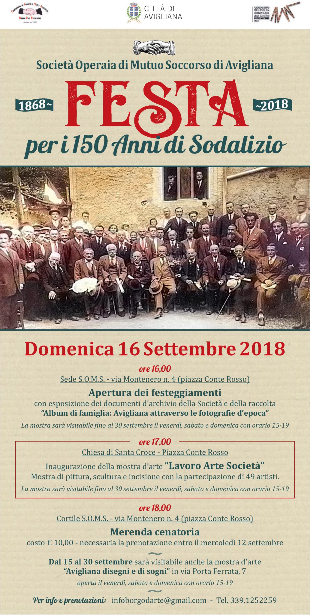 E sarà proprio l’arte la protagonista dei festeggiamenti per il centocinquantenario che si apriranno alle ore 16 con l’esposizione dei documenti di archivio della società e la raccolta “Album di famiglia Avigliana attraverso le fotografie d’epoca”. Uno sguardo alla storia della cittadina lacustre, alle fiorenti attività commerciali che caratterizzavano piazza Conte Rosso, centro della vita cittadina, alla vita operaia al Dinamitificio Nobel e scorci di vita quotidiana in bianco e nero.