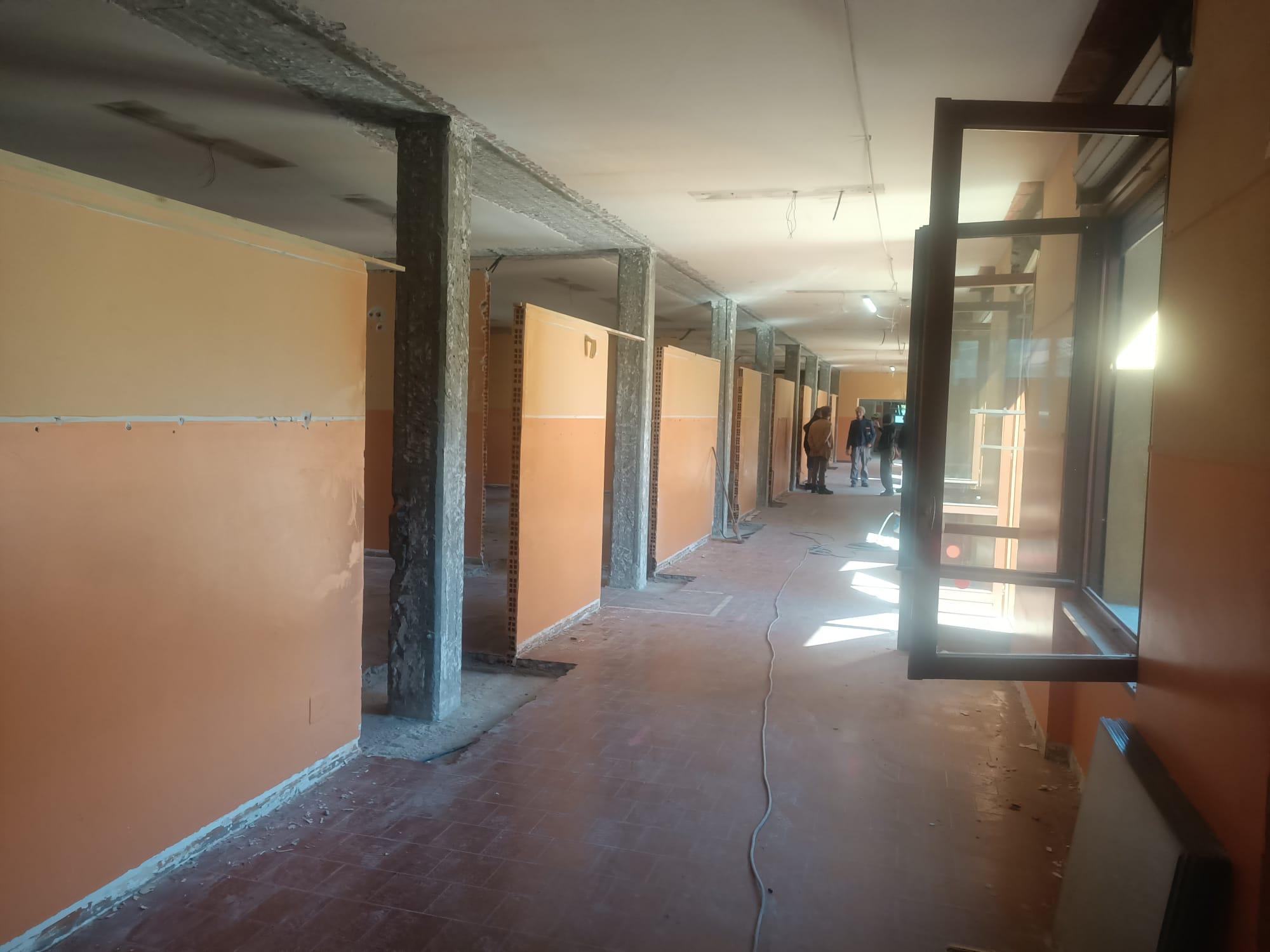 Nelle scorse settimane la struttura della scuola Italo Calvino è stata letteralmente spogliata, mettendo a nudo le colonne portanti. Concluso il processo di strip-out (così si chiama la fase in cui si mette a nudo il cemento armato e le giunzioni della struttura), nelle prossime settimane si attende l’inizio delle opere di rinforzo.
