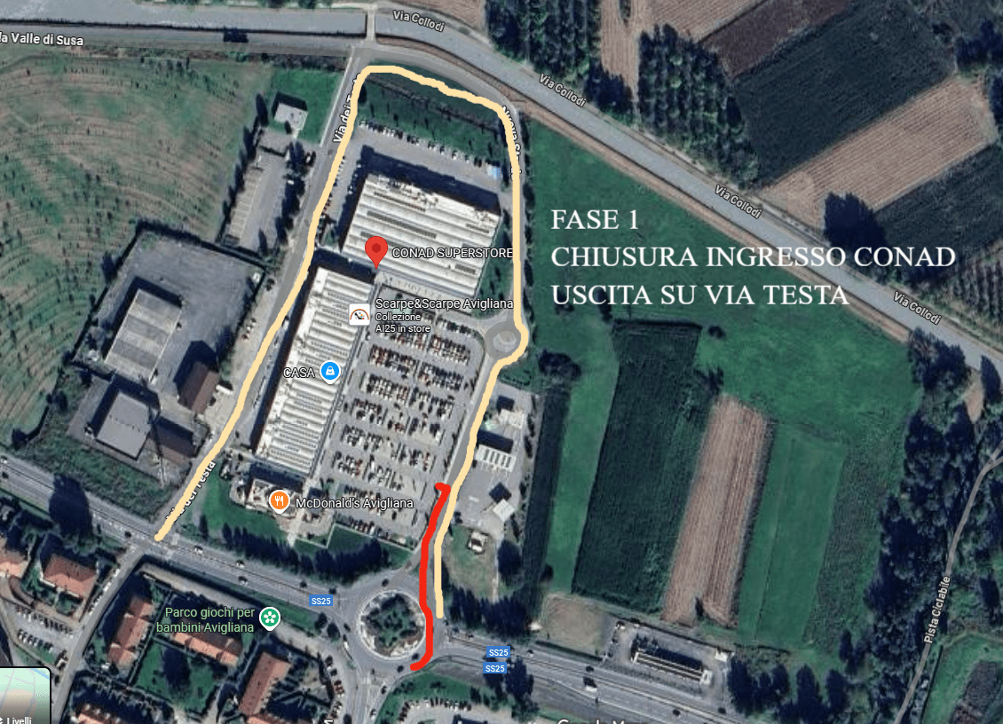 Per consentire la regolare esecuzione dei lavori sarà istituita una specifica segnaletica. Nella fase 1 dal 13/10/2025 al 19/10/2025 con orario 07,30-19: sul tratto di via Falcone compreso tra l’uscita parcheggio Conad e la rotatoria posta all’intersezione con corso Europa (SS25), sulla corsia di marcia lato numeri dispari divieto di transito in uscita dal centro commerciale a tutti i veicoli.