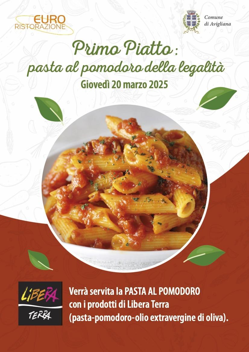 Nelle mense scolastiche delle scuole di Avigliana il 20 marzo, come negli anni passati, gli studenti potranno pranzare con la Pasta al pomodoro della legalità preparata con pasta, pomodoro e olio di Libera Terra.