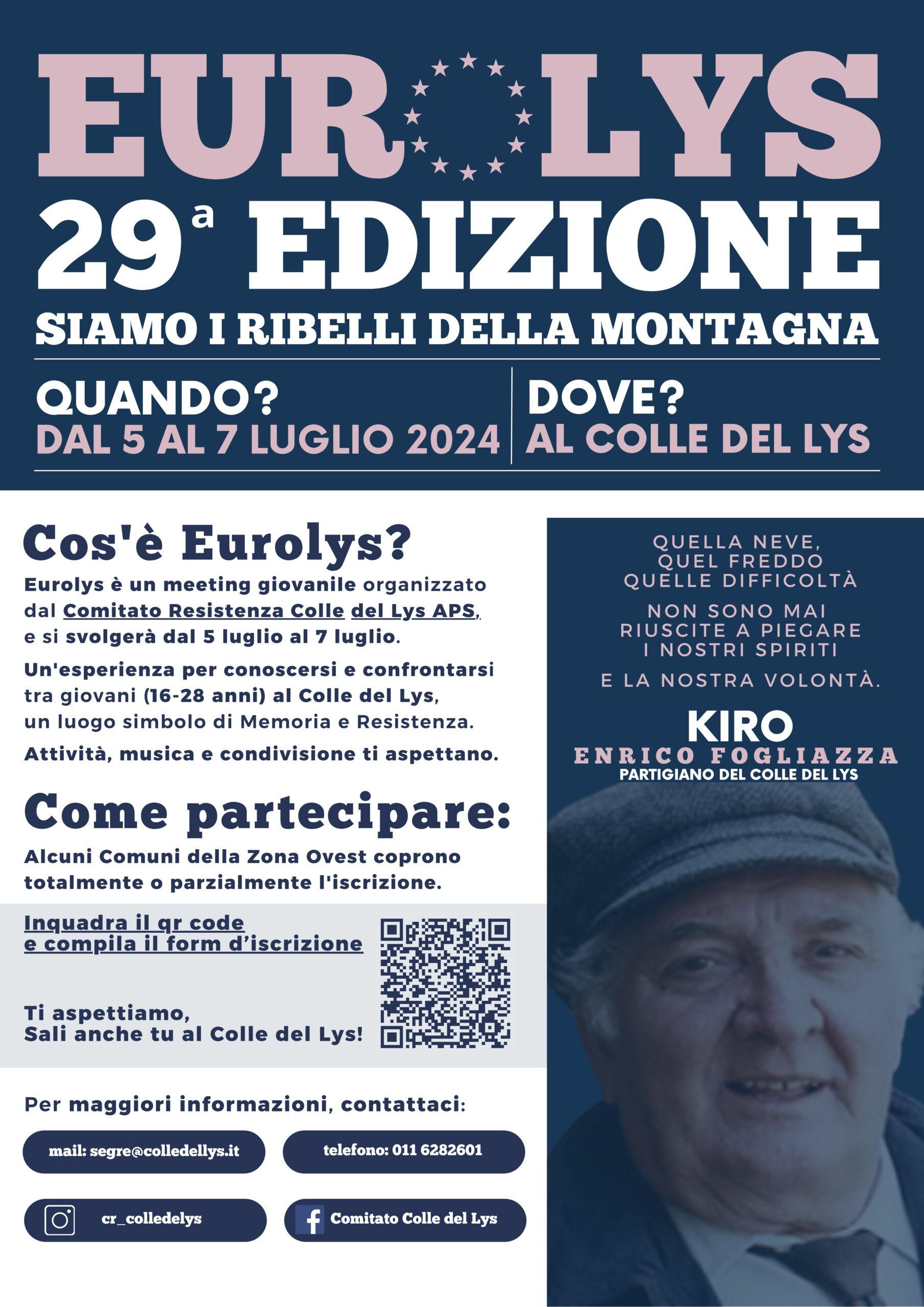 Dove? Al Colle del Lys, situato tra Viù e Rubiana. Quando? Dal 5 al 7 luglio (compresi) si svolge la 29esima edizione di Eurolys, un meeting giovanile organizzato dal Comitato Resistenza Colle del Lys Aps al Colle del Lys, un luogo simbolo di Memoria e Resistenza. Attività, musica e condivisione per tutti i partecipanti.