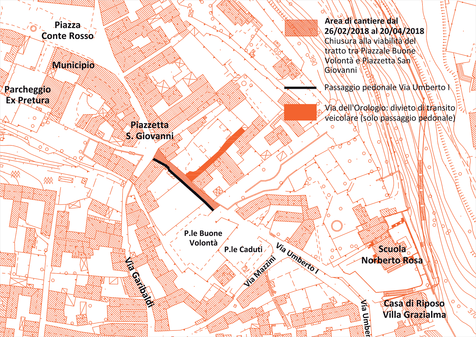 In prosecuzione dei lavori di rifacimento della pavimentazione in pietra di via Umberto I, la viabilità nella zona subirà variazioni a partire dalla settimana del 26 febbraio 2018 per circa 8 settimane.  La chiusura al traffico interesserà il tratto di via Umberto I, tra piazzale Buone Volontà e Chiesa S. Giovanni (piazzetta esclusa) con garanzia di accesso pedonale ai residenti.