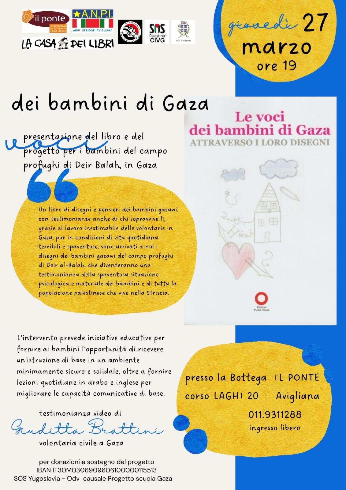 Giovedì 27 marzo 2025 alle 19 alla bottega Il Ponte di corso Laghi 20, presentazione del libro e del progetto per i bambini del campo profughi di Deir al-Balah, in Gaza