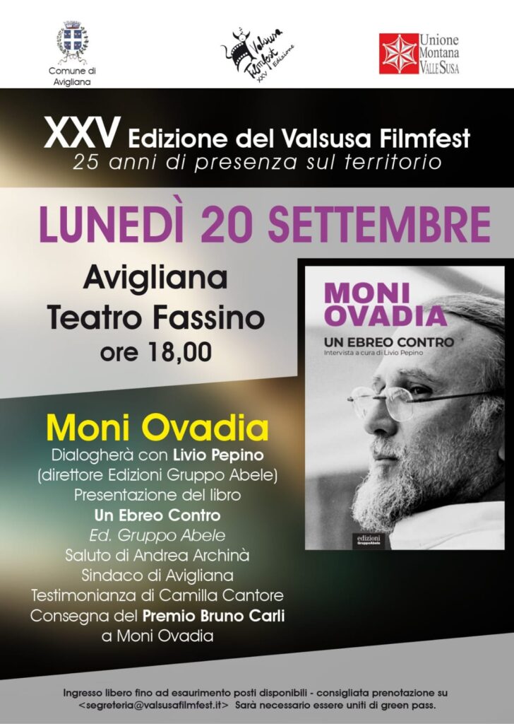 Lunedì 20 settembre è in programma un incontro con Moni Ovadia, alle 18 al teatro Fassino di Avigliana organizzato in collaborazione con il Comune di Avigliana e l’Unione Montana Valle Susa