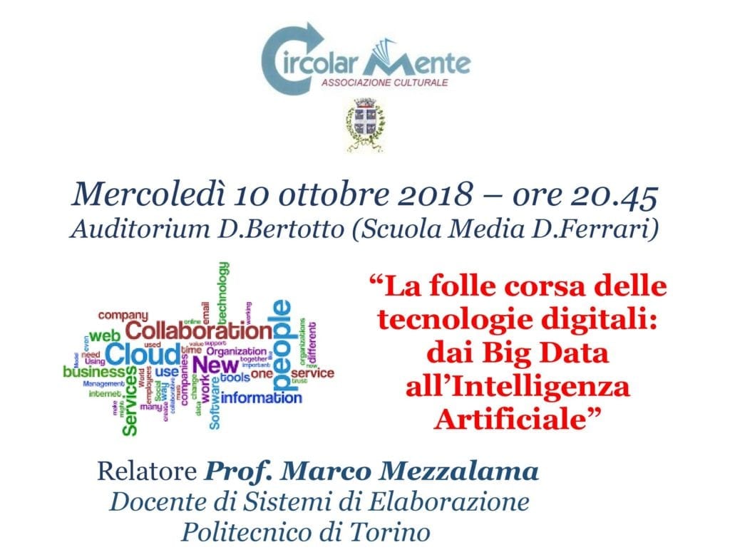 - Venerdì 14/09/2018 ore 21,15 Auditorium Bertotto, Scuole Medie – piazza del Popolo
