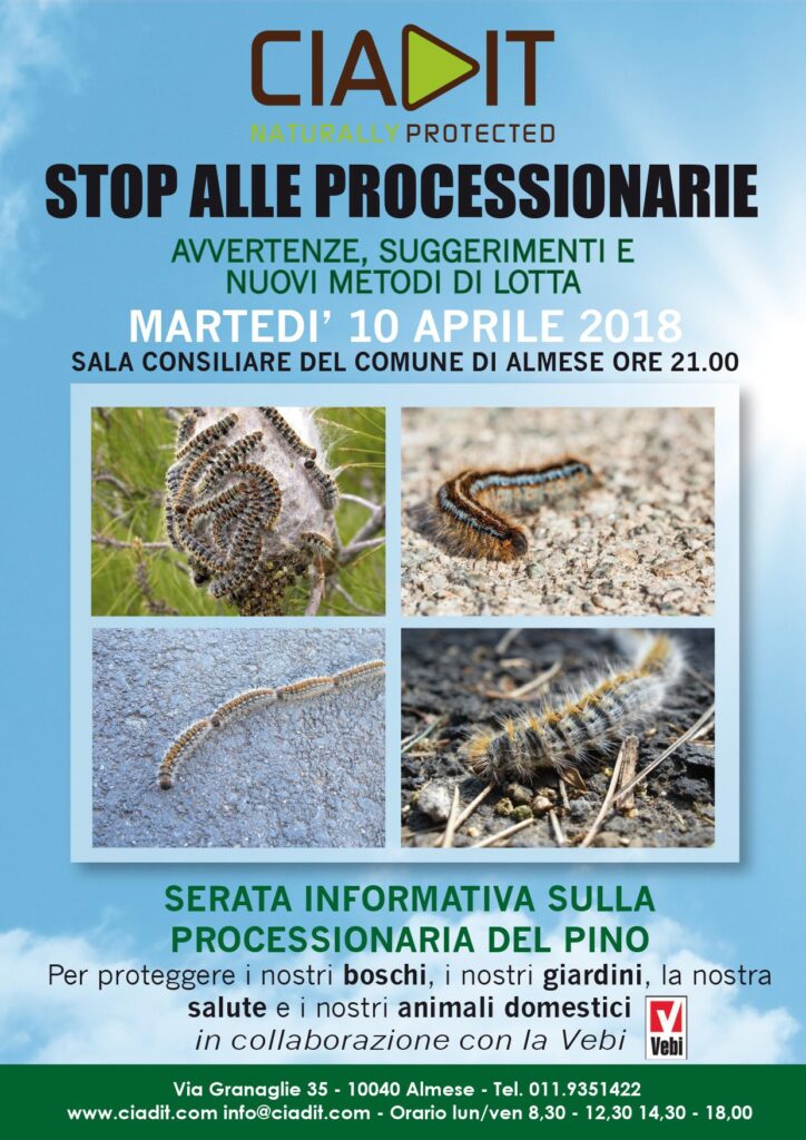 processionariaNel territorio comunale di Avigliana, in diversi ambiti anche a ridosso del centro abitato, in particolare nel parco e nell’area circostante il castello, è segnalata la presenza della “processionaria del pino” (Thaumetopoea pityocampa). I bruchi della processionaria fra metà gennaio e metà aprile (a seconda delle temperature) escono dai nidi, scendono lungo il tronco in terra, e si spostano in tipiche “processioni”. Ogni individuo è lungo 4/5 centimetri, ha il capo di colore nero, il dorso rosso fulvo, il corpo è di colore grigio sui lati ed è ricoperto di lunghi peli. La presenza di questo lepidottero può provocare danni al patrimonio arboreo e, a causa dei suoi peli fortemente urticanti, può costituire un rischio per la salute dell’uomo e degli animali, in particolare dei cani, che annusando il terreno possono aspirarne una grande quantità e manifestare sintomi talmente gravi da causarne la morte.