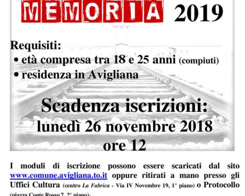 Prorogato al 6 dicembre il termine delle iscrizioni per l’edizione 2019 del Treno della Memoria. I partecipanti devono avere tra 18 e 25 anni compiuti entro la data della partenza, che avverrà tra