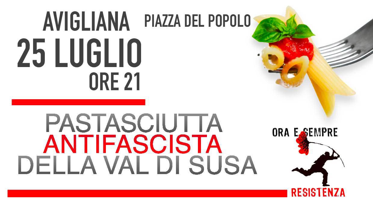 Il 25 luglio in piazza del Popolo ad Avigliana alle 21 si organizza la Pastasciutta antifascista della Val di Susa