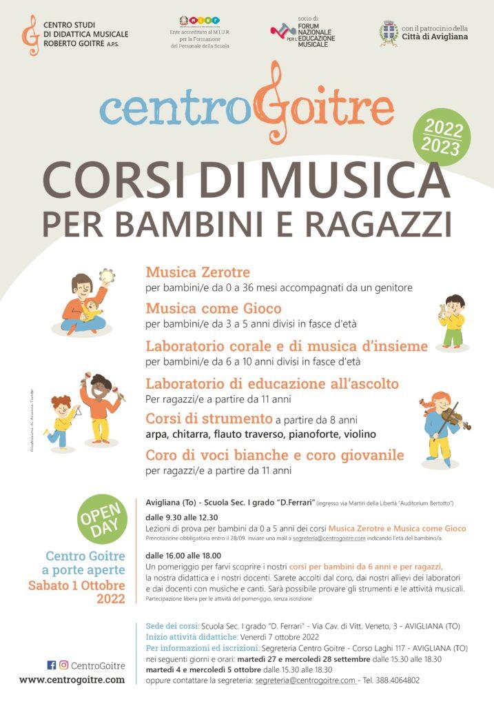 Al Centro Goitre di Avigliana è tutto pronto per iniziare un altro anno di musica, l’associazione aviglianese che ogni anno propone corsi di musica per bambini e ragazzi ha infatti organizzato per l’intera giornata di sabato 1 ottobre l’open day Centro Goitre a porte aperte presso la scuola secondaria di primo grado Defendente Ferrari.