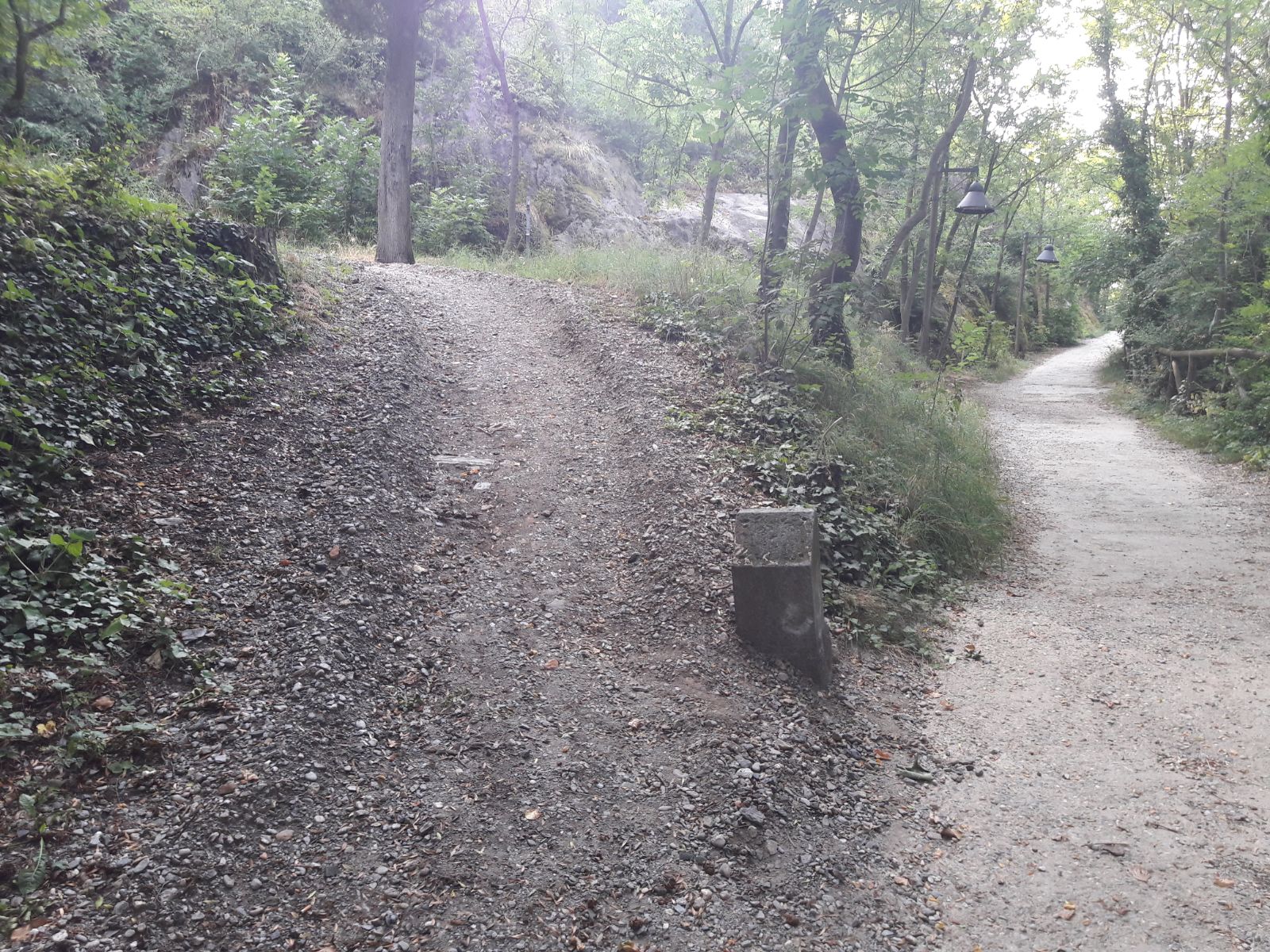 Il sentiero reso accessibile dagli Ecovolontari si inoltra in discesa per un primo tratto. Dopo poco sulla destra c’è l’accesso a una prima vista panoramica sul Lago Grande, mentre a sinistra continua incontrando un bivio. La strada a destra è un po’ più difficile mentre quella a sinistra risulta più facile perché è stata attrezzata con alcuni gradoni. I due sentieri si ricongiungono alla fine della piccola discesa.