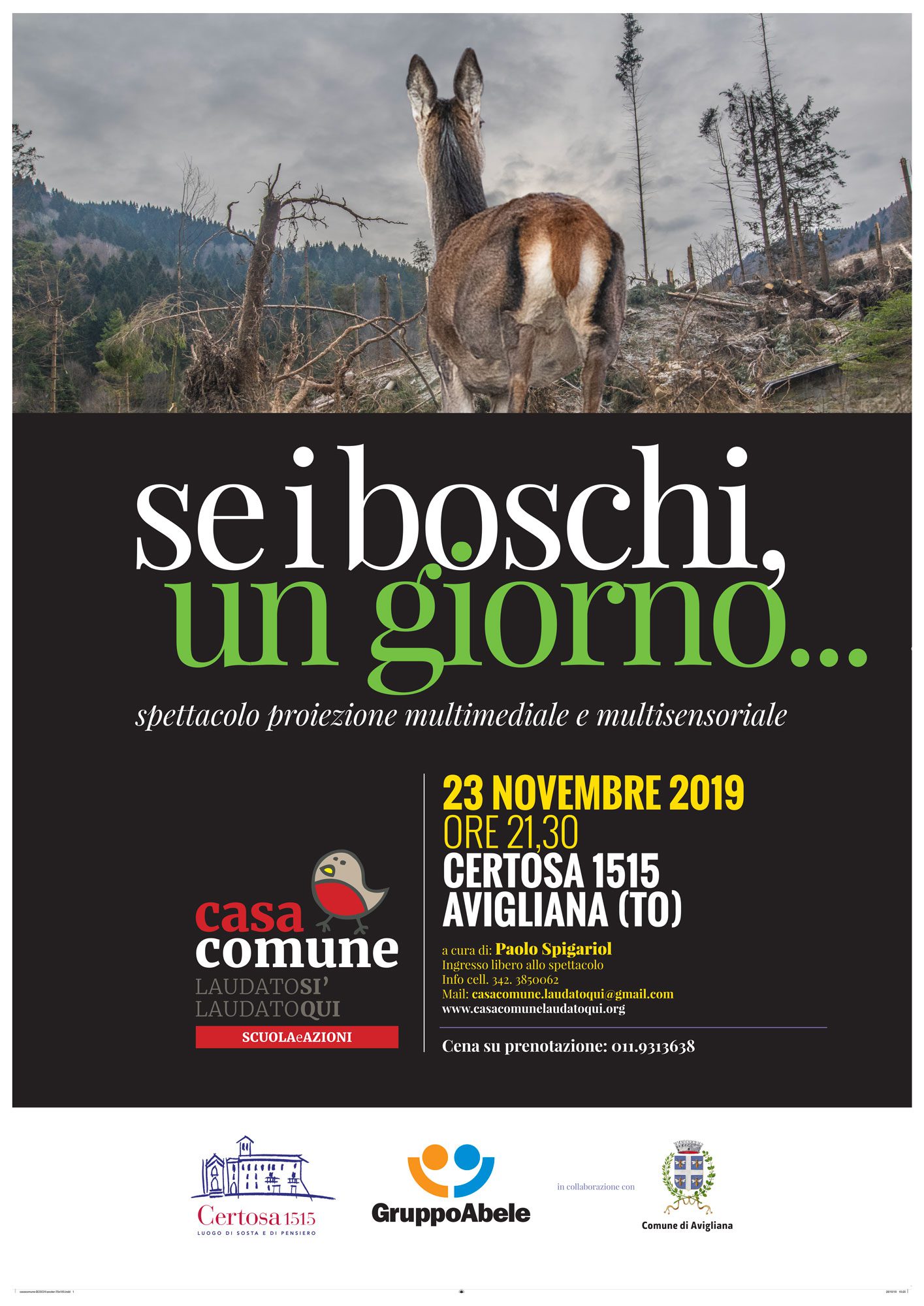 “Se i boschi un giorno…” dell’artista Paolo Spigariol alla Certosa di Avigliana alle 21,30 di sabato 23 novembre 2019