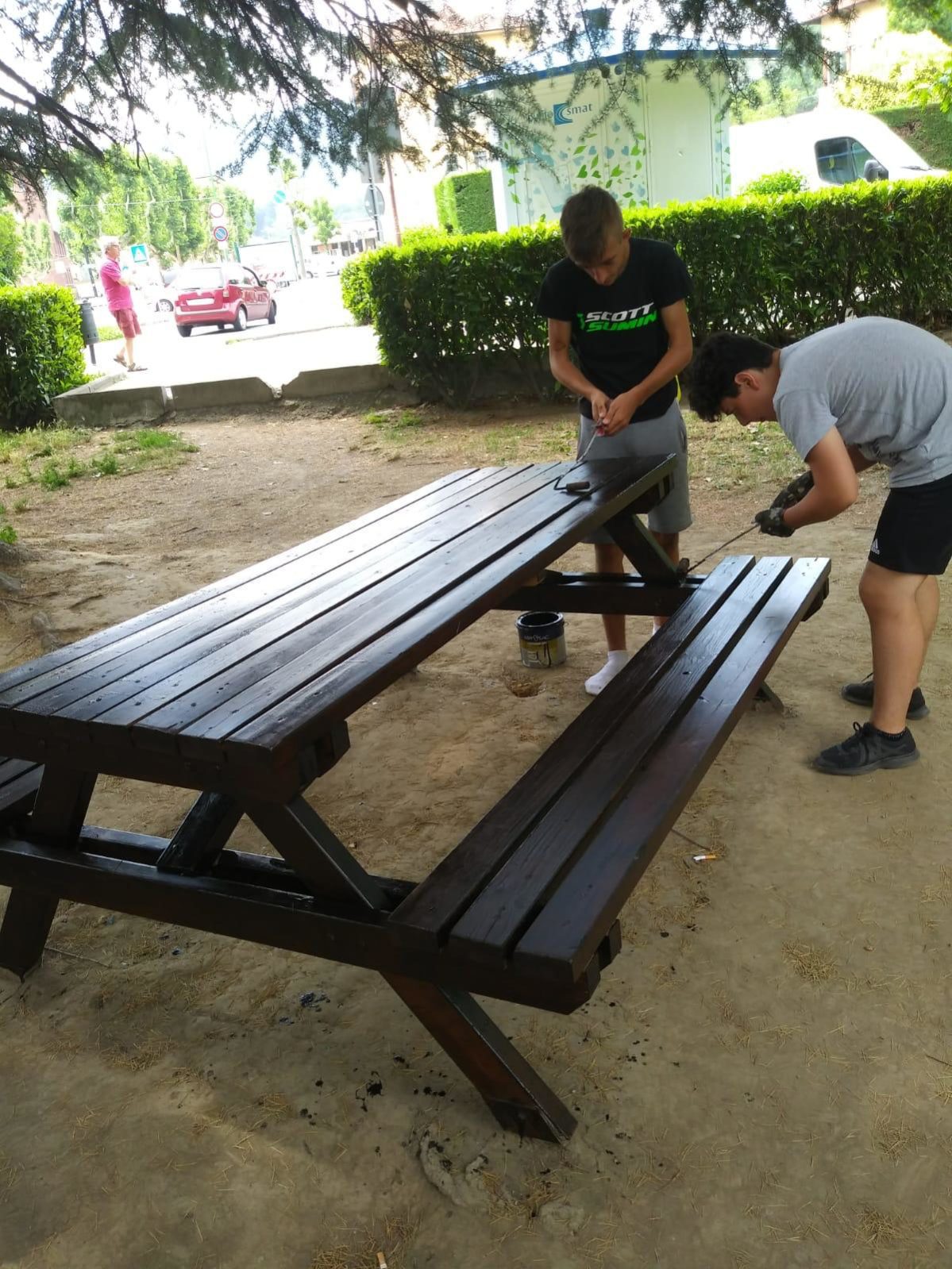 • giardinetto vicino alla Coop: riverniciatura delle panchine, del tavolo, del castello dei giochi dei bambini, della ringhiera, rimozione dell’edera accanto alla ringhiera.