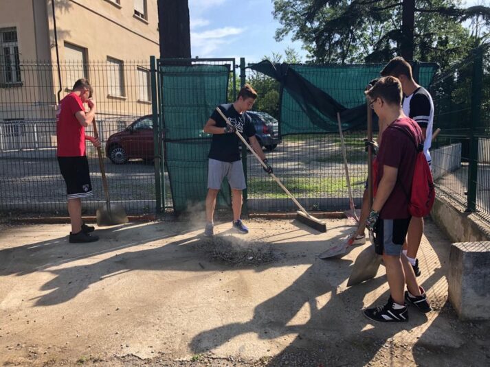• scuola Norberto Rosa: sostituzione di tutte le strisce antiscivolo degli scalini, sistemazione della ghiaia del cortile con pulizia all’esterno, rimozione erbacce e pulizia della scuola e dell’angolo bidoni immondizia;
