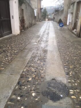 Nel 2017 è stata svolta la prima tranche di lavori in via Umberto I, con interventi Smat sull’acquedotto e di rinnovo di linee telefoniche ed elettriche da parte di Tim ed Enel. «L’intervento sul tratto da piazzale Buone Volontà fino a piazza San Giovanni – ha spiegato l’assessore ai lavori pubblici Fulvio Salzone – prevede quindi una sistemazione della pavimentazione in continuità con i precedenti lavori. La pavimentazione attuale risale infatti al 1800». Dopo la rimozione del ciottolato e delle guide, la Smat interverrà per sostituire la tubazione principale dell’acquedotto, nonché gli allacciamenti fino al pozzetto a bordo casa, senza spese per i cittadini. «I lavori – come ha illustrato il direttore dei lavori il geometra Mauro Paradisi, dell’Ufficio tecnico comunale – saranno relativamente brevi, ma ci sarà una fase di una settimana-dieci giorni in cui si attenderà l’ok per mettere in esercizio la tubazione: si tratta infatti di un’autorizzazione ministeriale e di controlli sull’acqua previsti dalla legge, una volta installata la nuova linea dell’acquedotto. Successivamente l’impresa effettuerà il restiling con il ciottolato e le lose. L’ufficio tecnico è a disposizione per qualsiasi informazione».