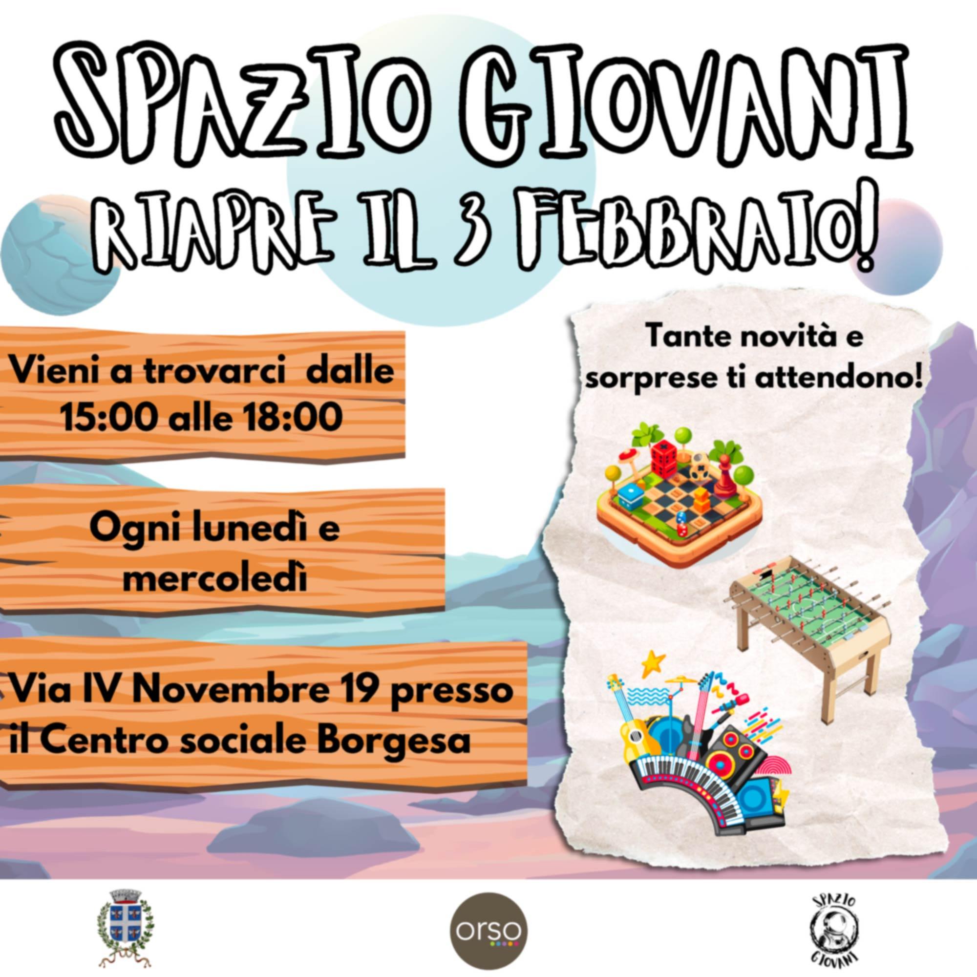 Da lunedì 3 febbraio 2025 ha riaperto lo Spazio giovani al centro sociale Borgesa presso La Fabrica ogni lunedì e mercoledì pomeriggio: tante le novità e le sorprese
