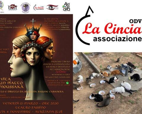 Spettacolo al Teatro Fassino il 13 marzo alle 20,30 con ingresso libero su offerta in favore dell’associazione La Cincia Odv che si occupa delle colonie feline del territorio