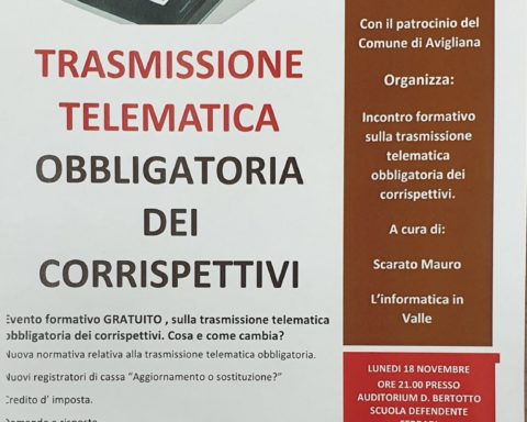 Serata formativa per tutte le attività commerciali sulla nuova norma in materia di trasmissione telematica obbligatoria dei corrispettivi e sulle agevolazioni fiscali: lunedì 18 novembre alle 21 al Bertotto