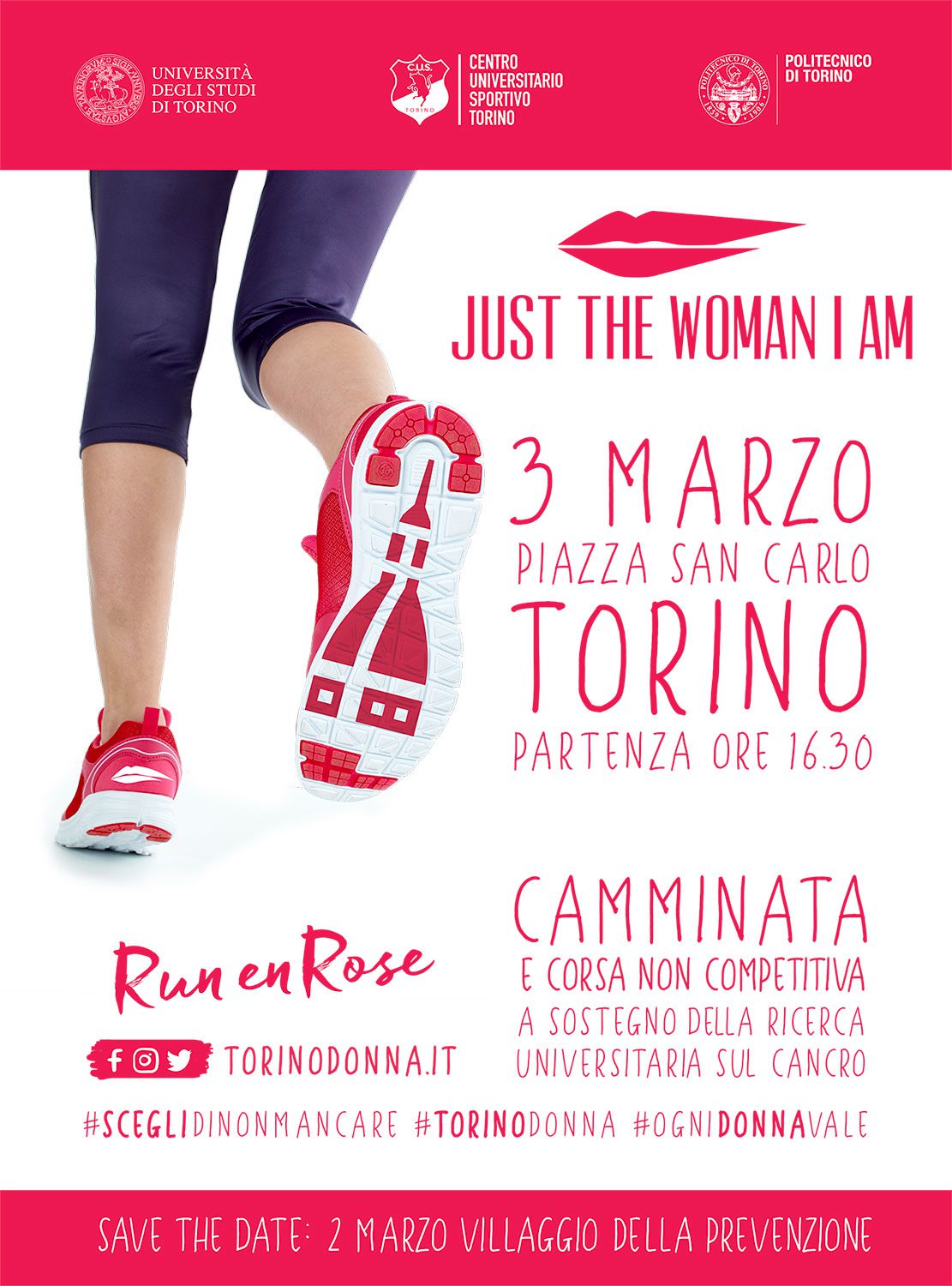 Formazione e ricerca universitaria, attività fisica e alimentazione sono le parole chiave di Just the woman I am: lo sport universitario è infatti ancora una volta in prima linea con lo scopo di comunicare i propri valori formativi, di strumento di prevenzione e salvaguardia della salute dell’individuo e soprattutto, grazie alla propria componente aggregativa, di sensibilizzare l’opinione pubblica diventando veicolo di cultura a sostegno dell’eliminazione della violenza di genere.