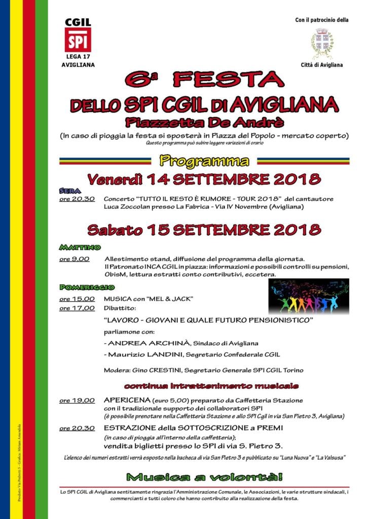 Saranno organizzati corsi di Storia della Musica in forma di concerto con l’ausilio di racconti, video ed esecuzioni dal vivo. Inoltre due assolute novità: corso di scrittura creativa per diventare autore di canzoni e, in collaborazione con “Arte in Movimento” di Giaveno, un corso di danza creativa per stimolare, attraverso la musica, il movimento e l’espressione del corpo. Presenti inoltre corsi collettivi di propedeutica, corsi di teoria e solfeggio, e, come negli anni passati, al prezzo promozionale di € 20 un corso chiamato “Il cercanote junior” riservato ai bambini dai 4 ai 6 anni. Nella primavera 2019 sarà istituita la prima edizione del concorso nazionale “Città di Avigliana” riservato al pianoforte e al canto moderno (informazioni da ottobre al sito www.sandrofuga.it). Le iscrizioni proseguiranno per tutto l’anno il martedì e il mercoledì dalle ore 15 alle ore 19. I corsi avranno inizio lunedì 1 ottobre.Per informazioni: