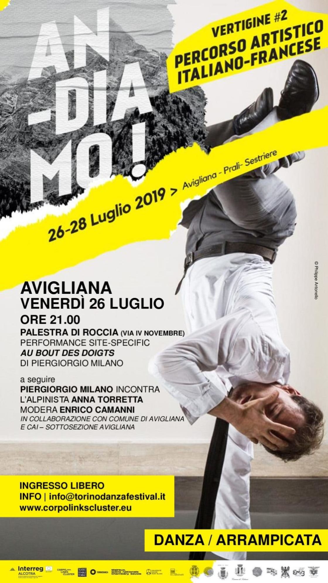 Una nuova collaborazione tra la compagnia Balletto Teatro Torino e il Comune di Avigliana porterà sul territorio il 21 giugno al Teatro Fassino lo spettacolo “Il corpo sussurrando” . Il Teatro Stabile di Torino con Torino Danza organizza in collaborazione con il Comune di Avigliana il 26 luglio alla Palestra di Roccia di Avigliana lo spettacolo Au bout des doigts – anteprima site specific di Piergiorgio Milano.