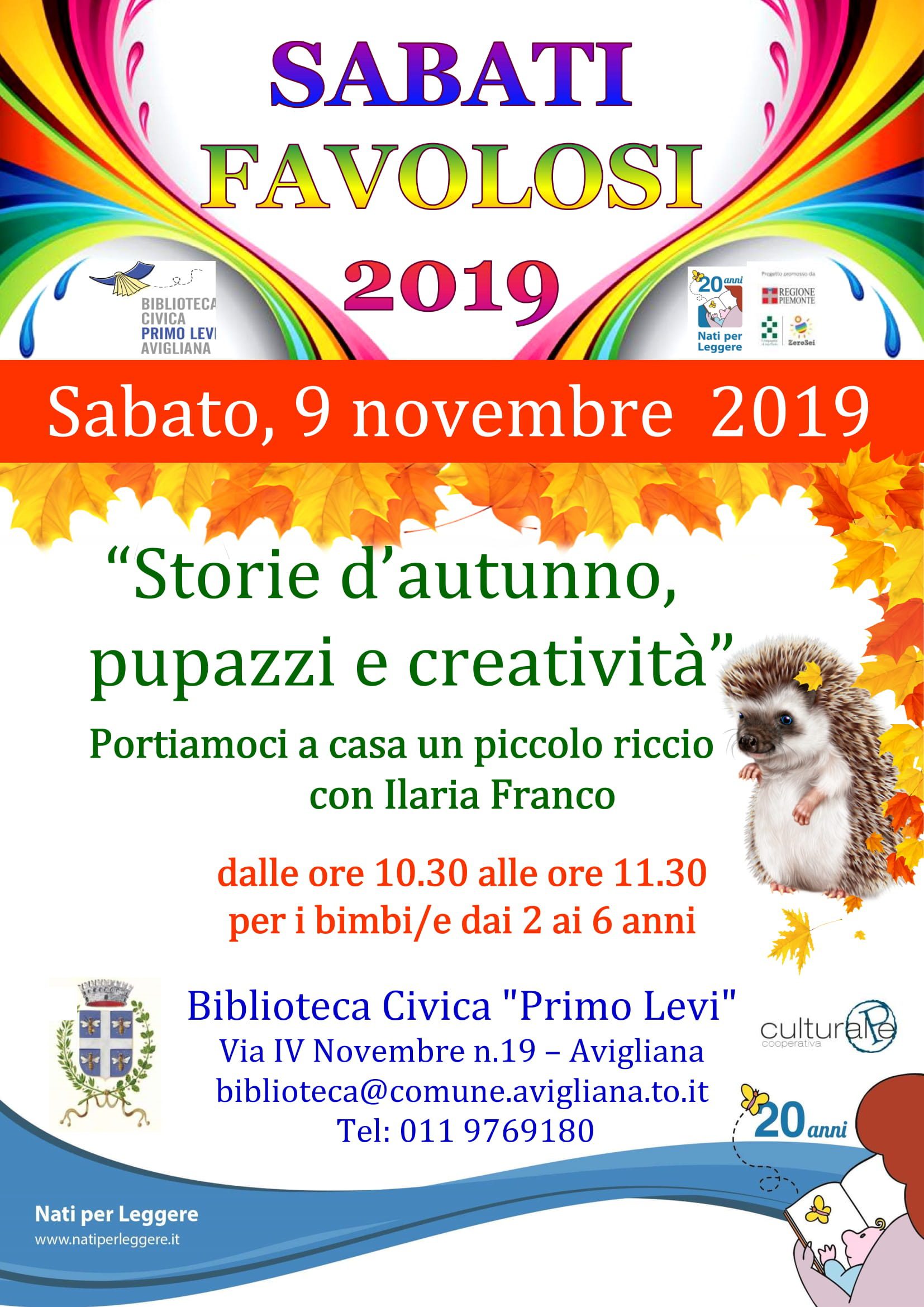 La biblioteca civica Primo Levi invita i bambini dai 2 ai 6 anni a partecipare all’incontro del 9 novembre 2019 per la rassegna Sabati favolosi. Dalle 10,30 “Storie d’autunno, pupazzi e creatività” con Ilaria Franco.