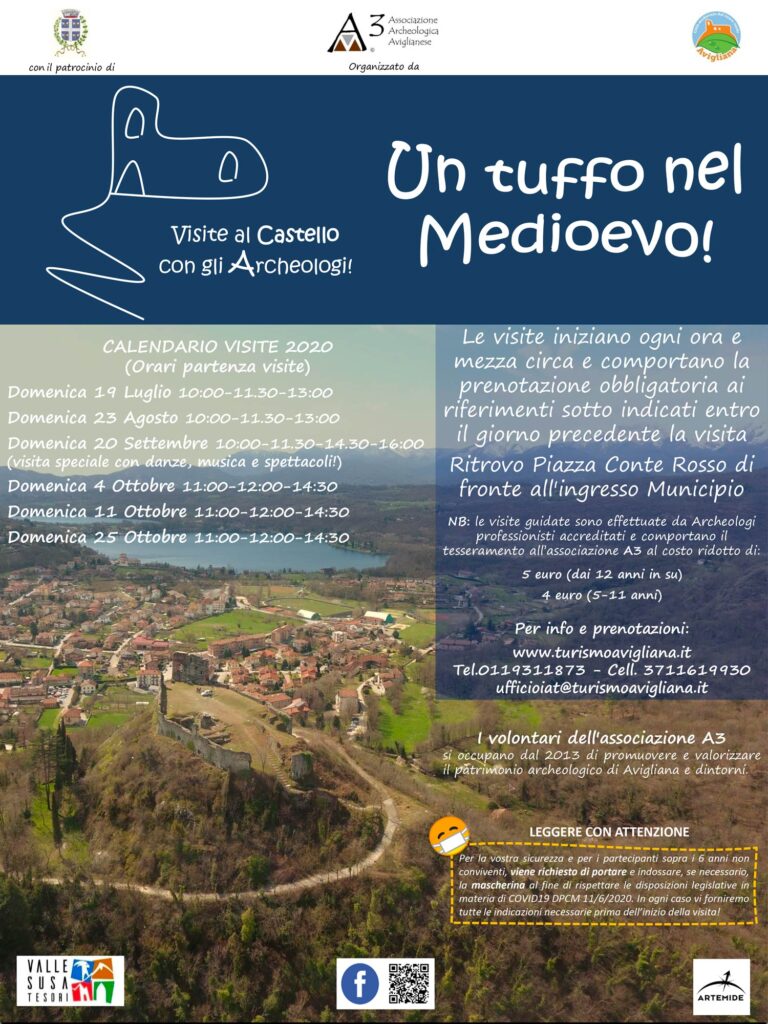 Torna Un tuffo nel Medioevo!, secondo ciclo di visite guidate a cura di A3, Associazione archeologica aviglianese, con gli archeologi al Castello di Avigliana. L’iniziativa di successo dell’estate 2019 si aggiunge alle altre visite guidate organizzate nel centro storico.