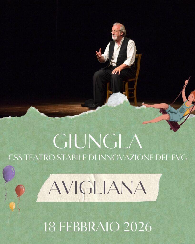 Avigliana, 17 febbraio 2026 – Per la rassegna teatrale Val di storie, rivolta agli studenti delle scuole della Valle di Susa, mercoledì 18 febbraio 2026 alle 10,30 al Teatro Fassino di Avigliana va in scena lo spettacolo “Giungla” del Css Teatro Stabile di Innovazione di Udine, di e con Roberto Anglisani regia di Maria Maglietta musiche di Mirto Baliani. Lo spettacolo è inserito nella rassegna Valdistorie per le scuole secondarie di primo grado.
