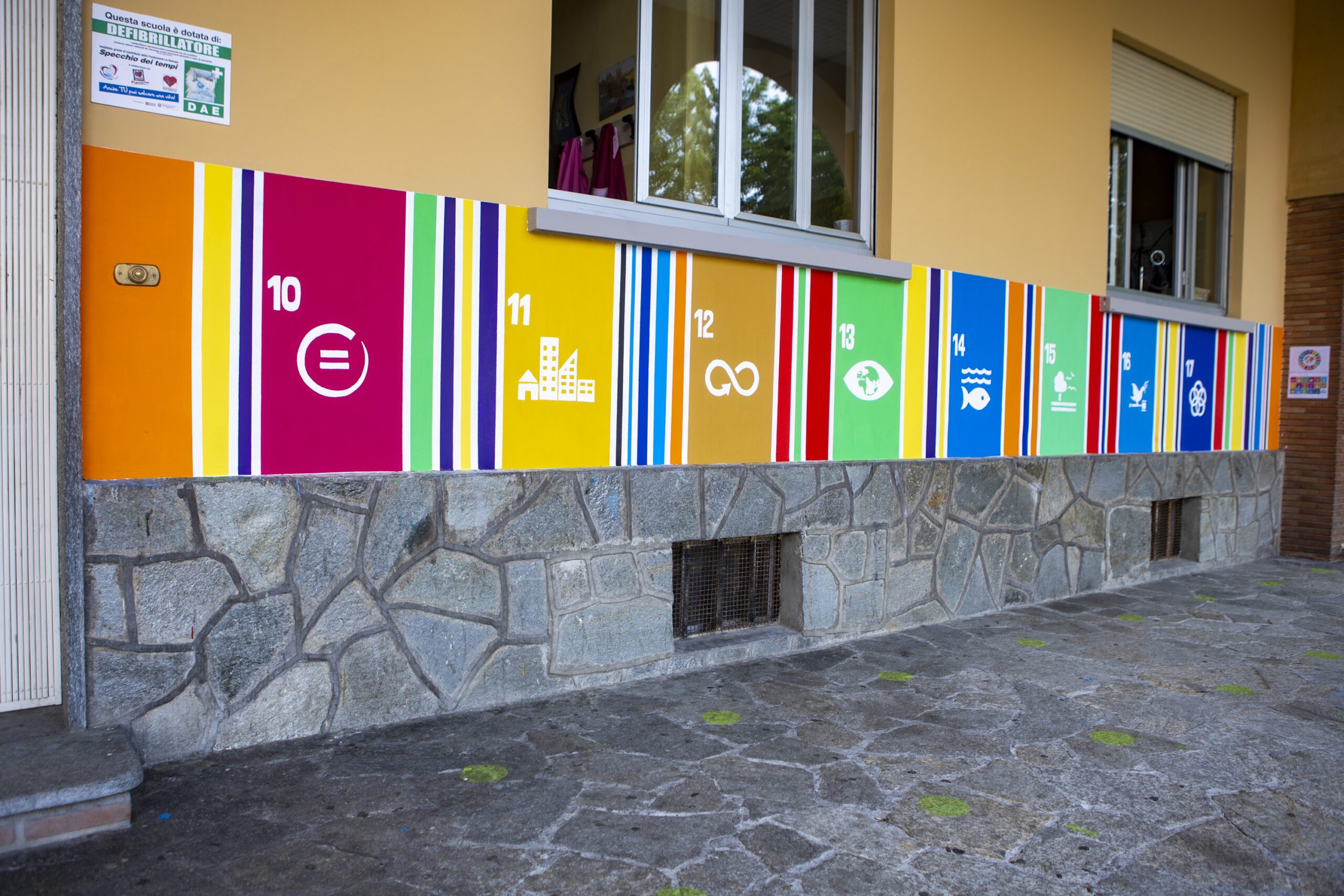 ​ I nuovi wall painting a cura del Dipartimento Educazione, realizzati dagli allievi dell’Istituto comprensivo e dell’Istituto tecnico Galileo Galilei di Avigliana, sono ispirati all’Agenda Onu 2030 e ai 17 Obiettivi per lo Sviluppo sostenibile. Ciascun obiettivo è rappresentato sul muro dipinto della scuola, identificato da un pittogramma e da uno specifico colore.