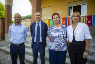 Andrea Archinà, sindaco di Avigliana, Giancarlo Vittone, dirigente scolastico Istituto Galileo Galilei, Paola Babbini, vicesindaco di Avigliana, Romana Guma, dirigente scolastica Ic Avigliana