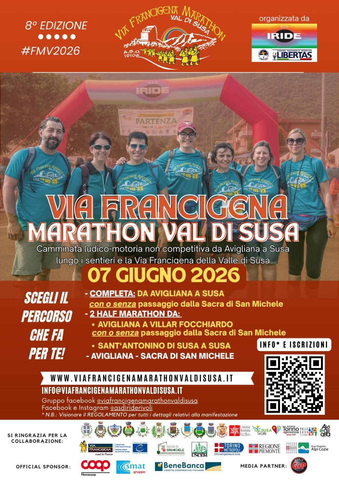 Avigliana, 6 febbraio 2026 – Dopo il successo delle scorse edizioni, Asd Iride è pronta per la prossima sfida. L’ottava edizione della Via Francigena marathon Val di Susa si svolgerà domenica 7 giugno 2026. La manifestazione, che ha saputo negli anni conquistare camminatori da tutta Italia — con arrivi da Toscana, Lombardia, Veneto, Emilia Romagna e Liguria (di cui il 70% alla loro prima esperienza) — torna con una proposta ancora più ricca e personalizzabile.