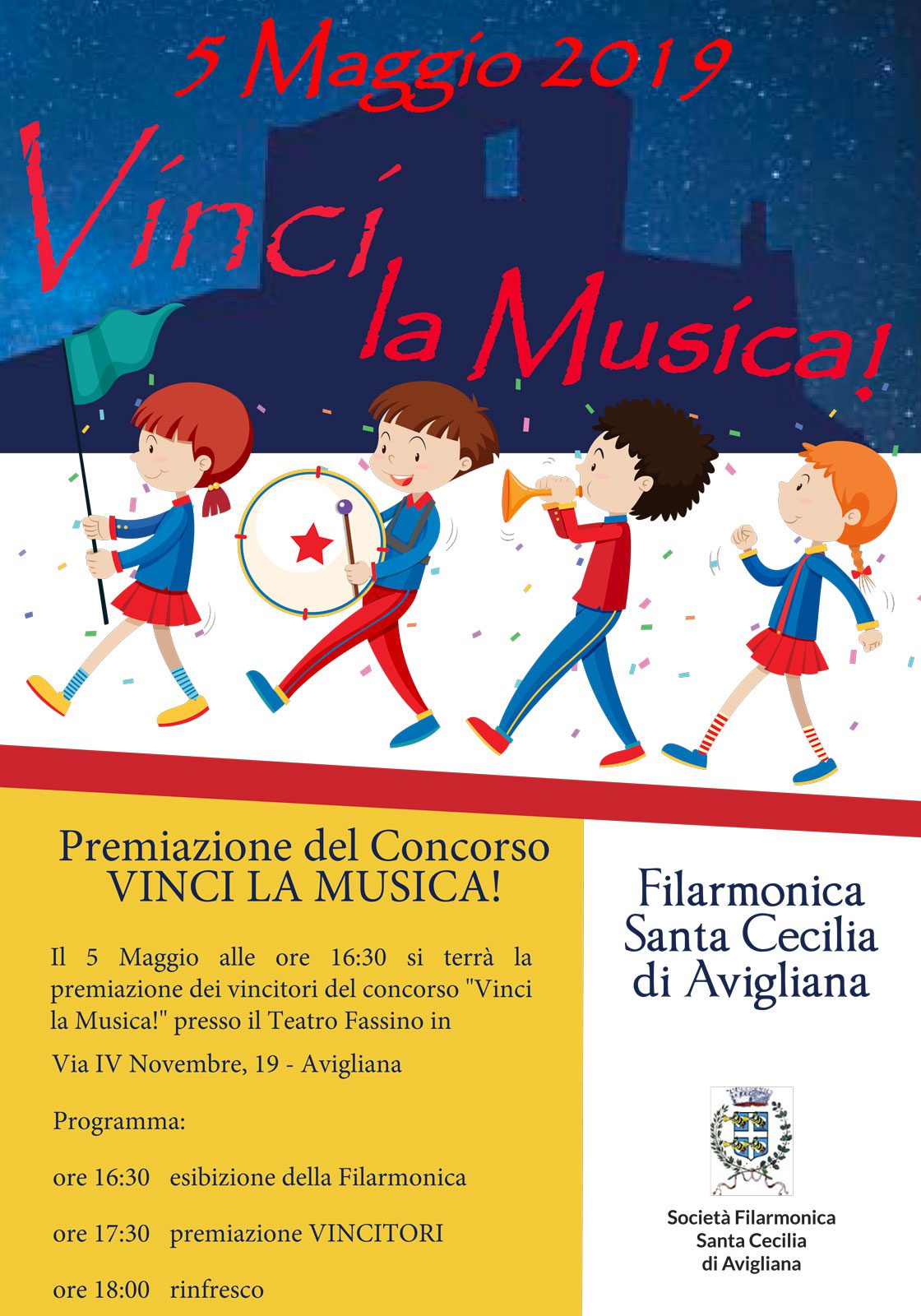Domenica 5 maggio 2019 si tiene la premiazione del concorso “Vinci la Musica”. Alle 16,30 al teatro Fassino il concerto della Filarmonica, alle 17.30 la premiazione dei vincitori. A seguire sarà offerto piccolo rinfresco. Sono invitati naturalmente i piccoli partecipanti con le loro famiglie e gli insegnanti che hanno partecipato all’iniziativa, senza cui la preziosa collaborazione non sarebbe stato possibile completare il progetto.